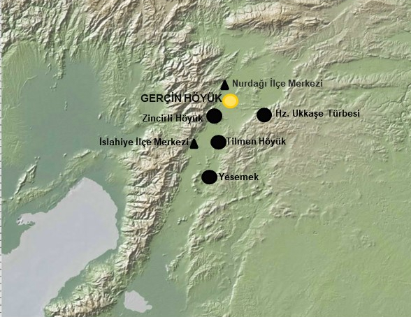 Gerçin Höyük Levant koridorunun kuzey kesiminde Karasu deresinin oluşturmuş olduğu, Nurdağı ve İslahiye Ovalık alanı içinde yer almaktadır.